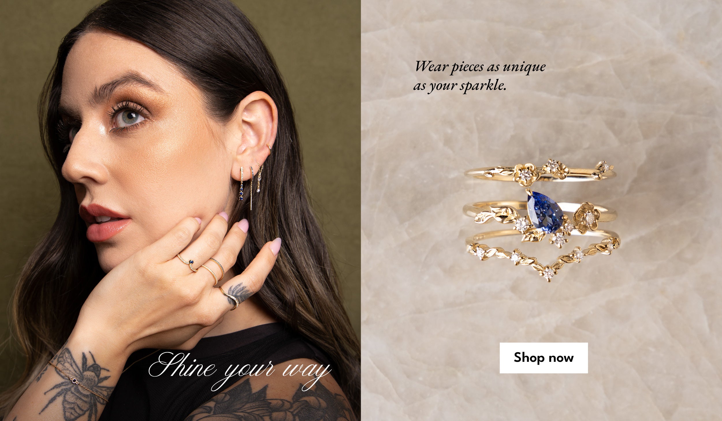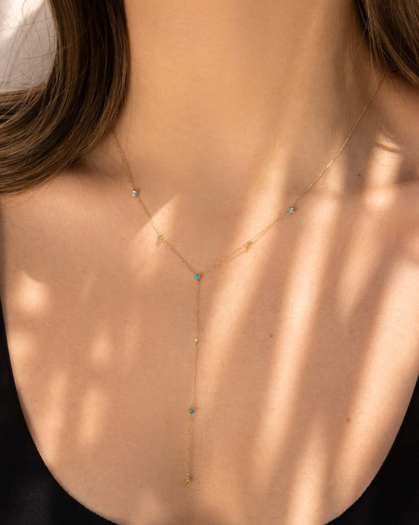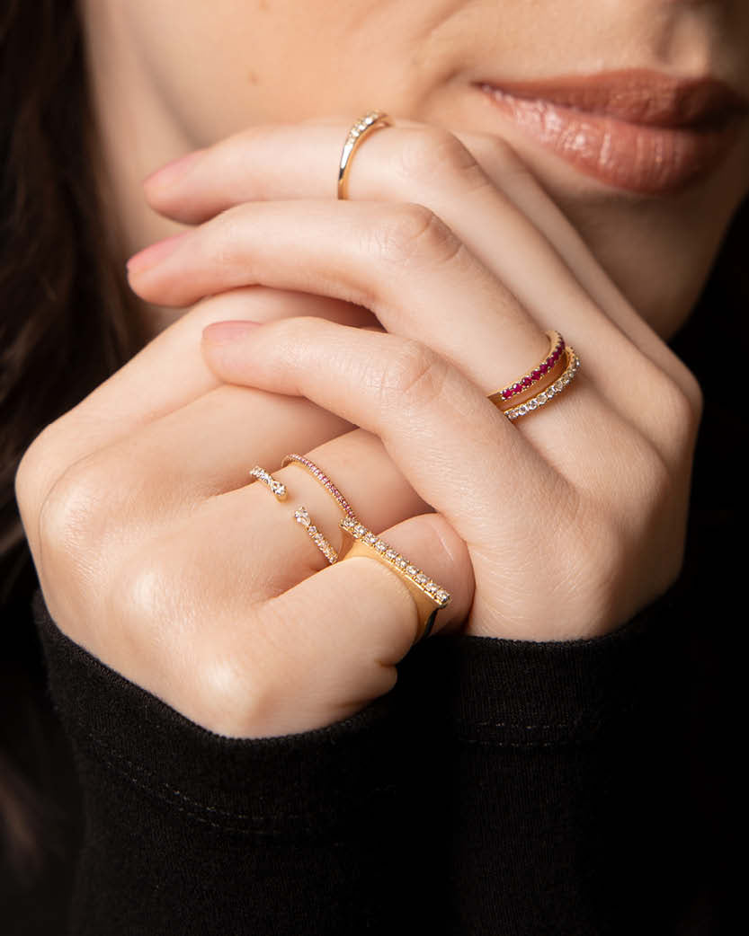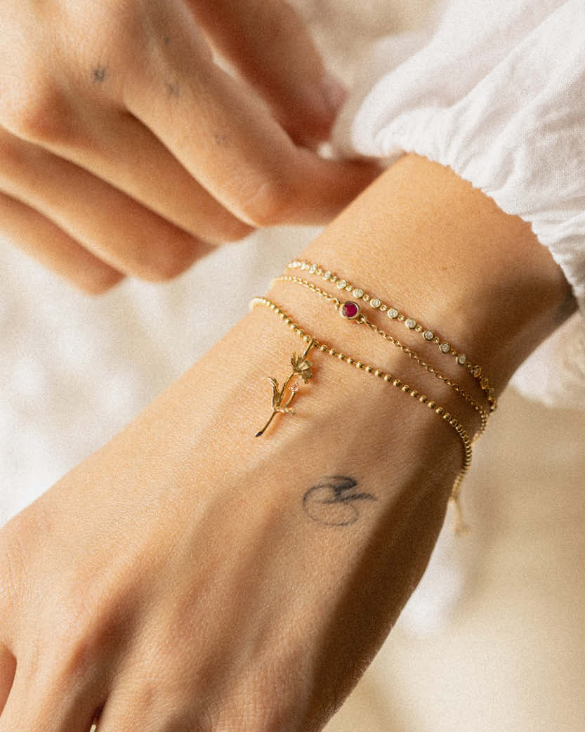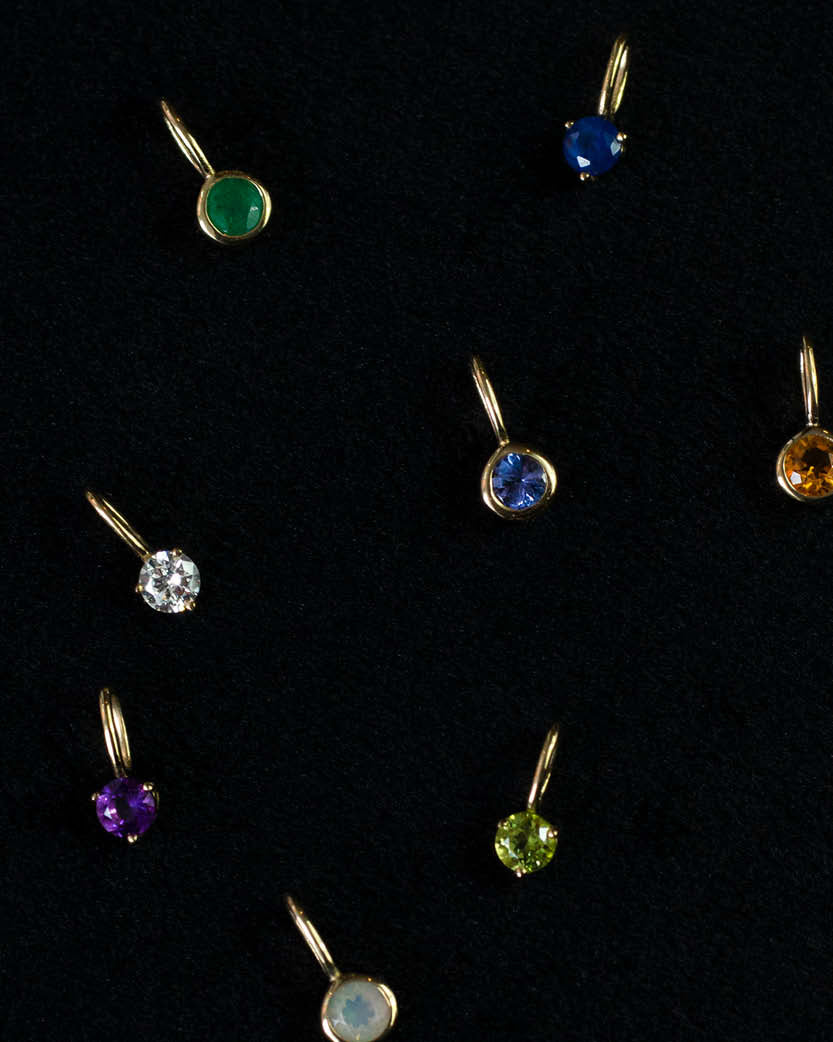 All pieces are made of solid 14K gold and precious stones.